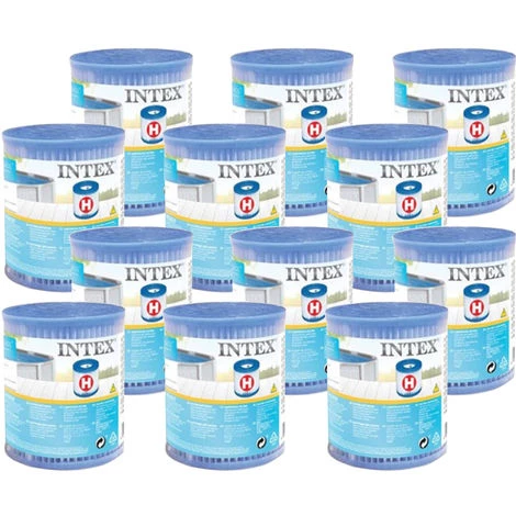 Cartouches de filtration H vendues en lot de 3, 6 ou 12.Les cartouches de filtration de type H sont compatibles avec l’Ă©purateur Ă cartouche 1,25 mÂł/h de la marque Intex.Elles sont indispensables pour la filtration de votre piscine. Facilement nettoyage, nous vous conseillons de la nettoyer 2 fois par semaine et d’alterner l’utilisation de 2 cartouches pour prolonger leur durĂ©e de vie.Matière : fibre dacron
