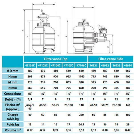 - Accessoire piscine : filtre à sable soufflé MILLENIUM Ø 430 mm – Vanne dessus 1″1/2