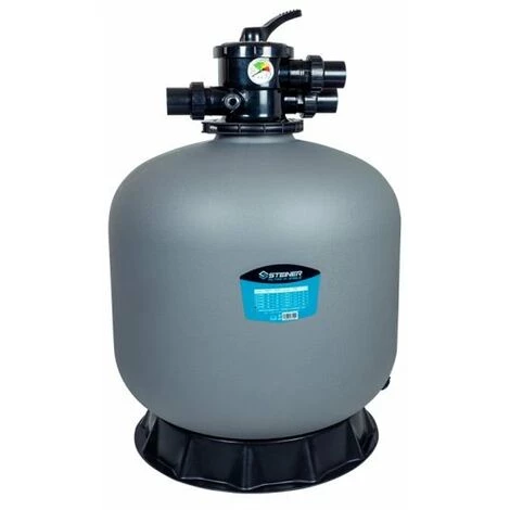 Le filtre à sable Ø635mm Steiner d’un débit de 16m³/h avec vanne Top 6 voies est un élément primordial et efficace pour filtrer et purifier l’eau de votre piscine. Il s’agit d’une option économique et nécessitant peu d’entretien pour garder l’eau de votre piscine toujours plus limpide. Disposant d’une surface de filtration de 0.32 m², il restera parfaitement adapté aux piscines ayant un volume d’eau jusqu’à 64m³. Grâce à ses entrées et sorties de vanne en 1.5’’ avec raccords Ø50mm à coller, il pourra s’intégrer facilement à votre installation. Sa cuve anticorrosion en polyéthylène haute densité soufflé résistera parfaitement aux produits de traitement et aux intempéries. Équipé d’un manomètre permettant un contrôle visuel permanent du niveau d’encrassement, d’une base injectée pour plus de stabilité et d’un témoin de turbidité pour une parfaite gestion des phases de lavage. Compatible eau salée et eau chlorée.Â