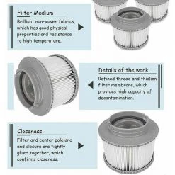 Gardez l’eau frache : ce filtre de piscine de massage est sr de garder l’eau pure de votre spa propre et frache. Convient pour les marques de spa uniquement les modles MSPA : Toscane, Elegance, Camaro, Alpine, Blue Sea, Silver Cloud, Castello, Oasis. Vous pouvez profiter du spa de piscine de massage sr et sain. .Facile nettoyer et bactries difficiles reproduire : le filtre de piscine de massage est fabriqu en papier Dacron facile nettoyer et rsistant, la salet peut tre lave facilement. Et ce filtre est difficile produire des bactries, de sorte que la pollution secondaire a t vite. La cartouche filtrante de rechange MSpa limine la salet et les germes et garantit une eau propre et frache. .Ncessite un nettoyage et un remplacement rgulierPour une efficacit maximale, ce filtre de piscine de massage doit tre nettoy chaque semaine et remplac au moins une fois par mois. La cartouche filtrante de rechange MSpa limine la salet et les germes et garantit une eau propre et frache. La cartouche filtrante est nettoye plusieurs reprises avec un jet d’eau. Mais s’il reste sale ou sale, il est temps de le changer. .Remplacement pratique : cartouche filtrante de rechange de haute qualit pour jacuzzi et spas. Il est facile de dvisser et de remplacer les filtres. Le filtre est flexible et pratique. .