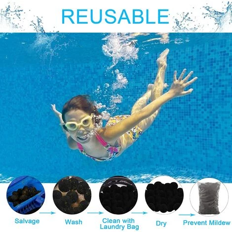Usage Répété : À nettoyer régulièrement, lavable en machine, recyclable, très résistant et à faible perte. (Conseils : mettre les billes filtrantes dans un sac à linge et laver en machine)