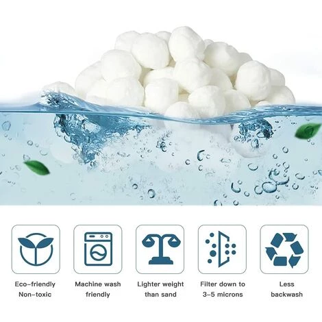 SpĂ©cifications des MatĂ©riauxă: MatĂ©riau 100% polyĂ©thylĂšne, recyclable; Ί50mm de diamĂštre, peut remplacer le sable filtre 25kg, pĂšse 700g, peut ĂȘtre lavĂ©.