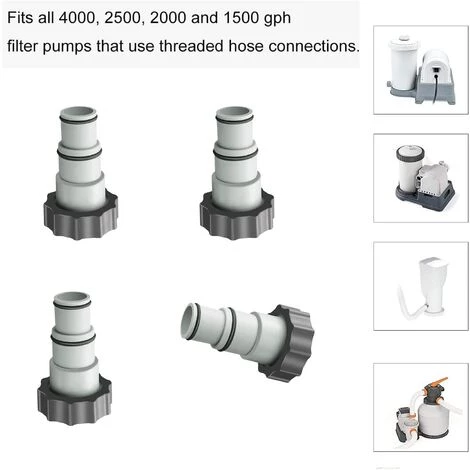 HEGUYEY 4 Pièces Adaptateur Piscine, Remplacement Adaptateur De Tuyau Série Intex A Avec Filetage, Tuyau De Diamètre 1,5″ Et 1,25″, Adaptateur De Pompe Pour Kits De Piscine