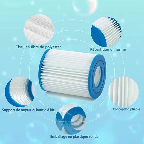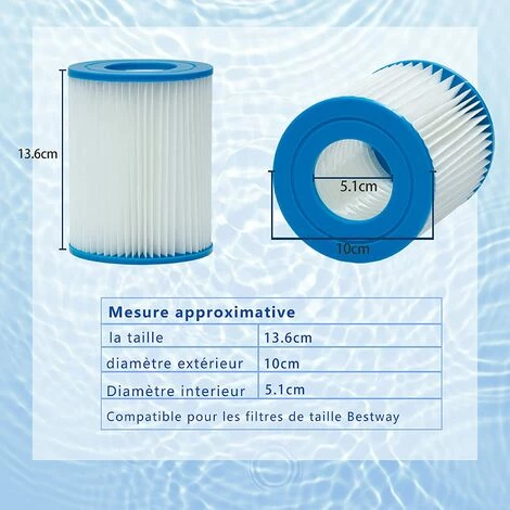 – Compatible avec: Cartouche de filtre ii Pour les pompes Bestway Type II 58383 (530 gal / heure, 2,006 l / h) et 58386 (800 gal / heure, 3,028 l / h), 58117 (800 gal / heure, 3,028 l / h), 58386GS ( 800 gal / heure, 3028 l / h), 58386GS (530 gal / heure, 2 006 l / h).