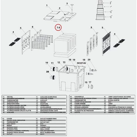 OSQI Pièce Détachée Filtre Biologique CBF-350 Ensemble Complet D’éponges Filtrantes Filtre En Mousse(24*20*7.5CM)