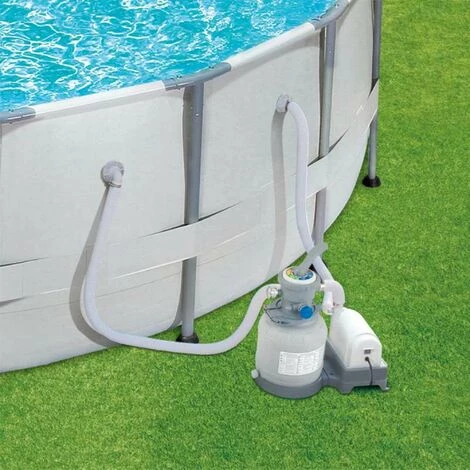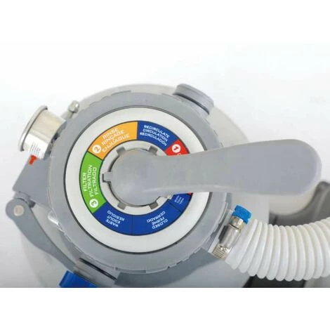 Informations produit: Filtre Ă sable Marque: Summer Waves Coloris: gris DĂ©bit: 4,2 m3/h Diamètre des raccords: 38mm Contenance: 12 kg de sable Sable: finesse #20 avec des grains compris entre 0.45 & 0.85mm et un coefficient d’uniformitĂ© infĂ©rieur Ă 1.75 6 modes de fonctionnement filtre, lavage Ă contre-courant, rinçage, recirculation, vidange et fermeture Manomètre pour vĂ©rifier l’Ă©tat d’encrassement Moteur puissant RĂ©servoir très rĂ©sistant Tension de fonctionnement: 230 volts Entretien: Remplacer le sable tous les 5 ans. Adaptable Ă toutes les piscines dont le diamètre d’entrĂ©e et sortie de pompe est de 3.81 cm ATTENTION: Ne jamais mettre la pompe en fonction sans eau