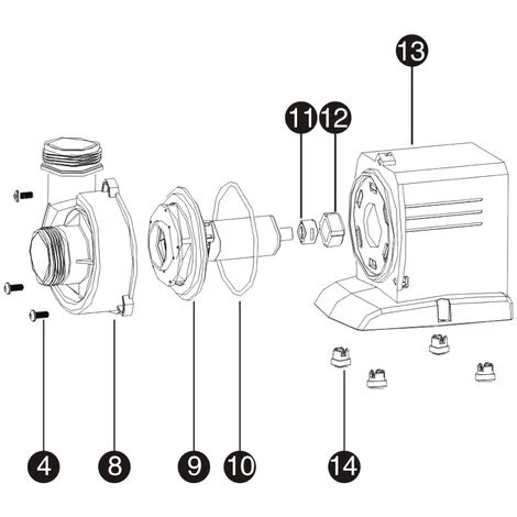 • SunSun CPP-8000F: puissance: 62 W, hauteur de refoulement: 6,0 m, débit: 5000 l/h (avec un tuyau de 1.2 m x ø32 mm )