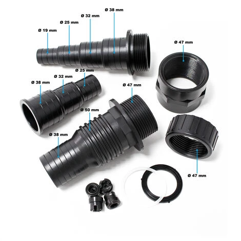 | Raccordement de tuyau Ø / Pouce | 25 mm / 33 mm / 38 mm /51 mm (1 Pouces – 2 Pouces) |